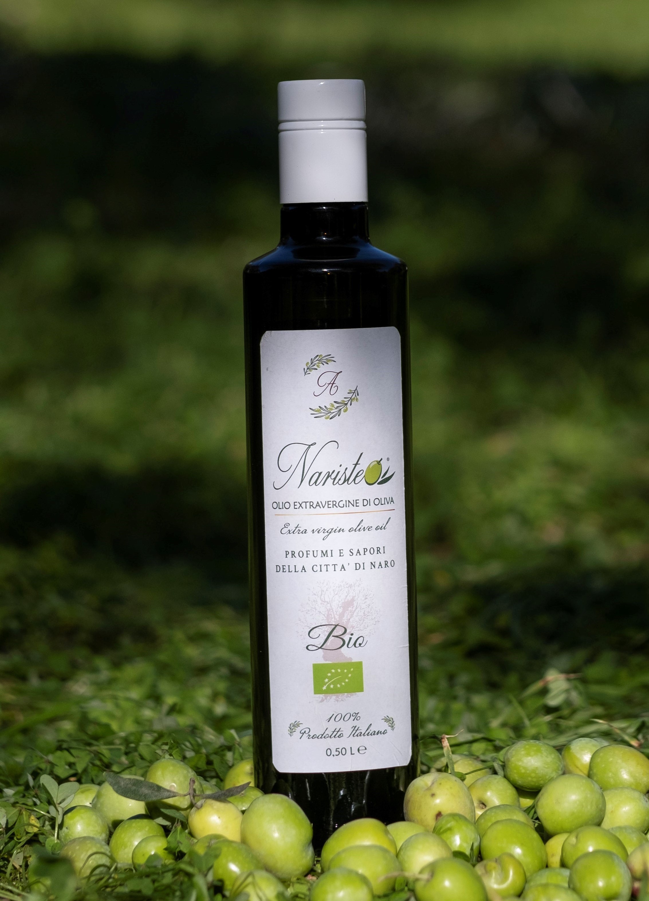 Olio Naristeo Extravergine biologico spremuto a freddo e prodotto in Sicilia.